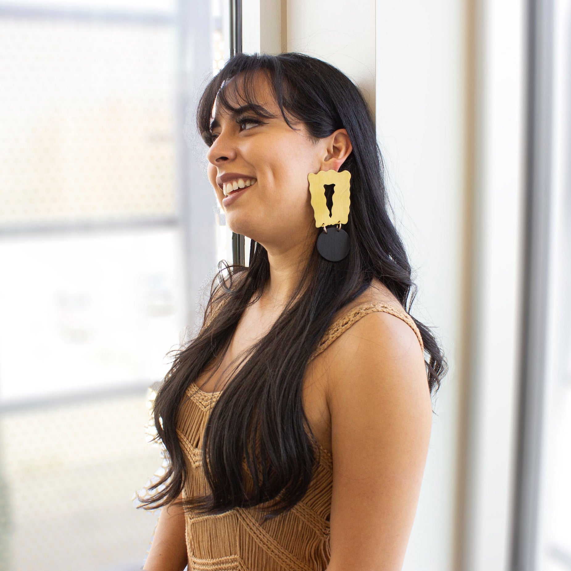 The love for big earrings, color, and metal design all in one. These earrings are BIG statement, heavy, dangle pieces.
