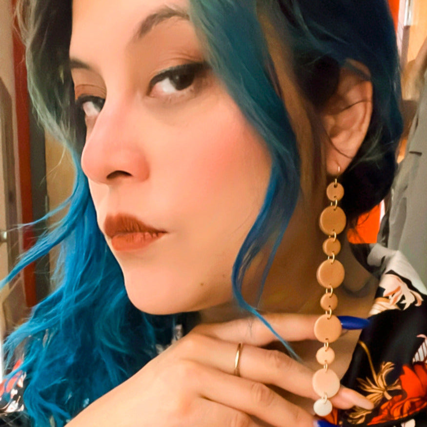 This Rose Champagne color earrings are great to elevate your outfit, they have the perfect cool and warm tones to add to your collection. This pair goes from rose color to translucent pearlescent color.